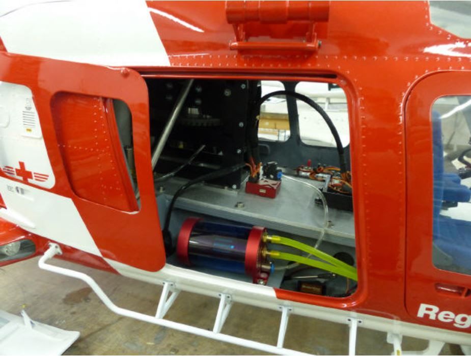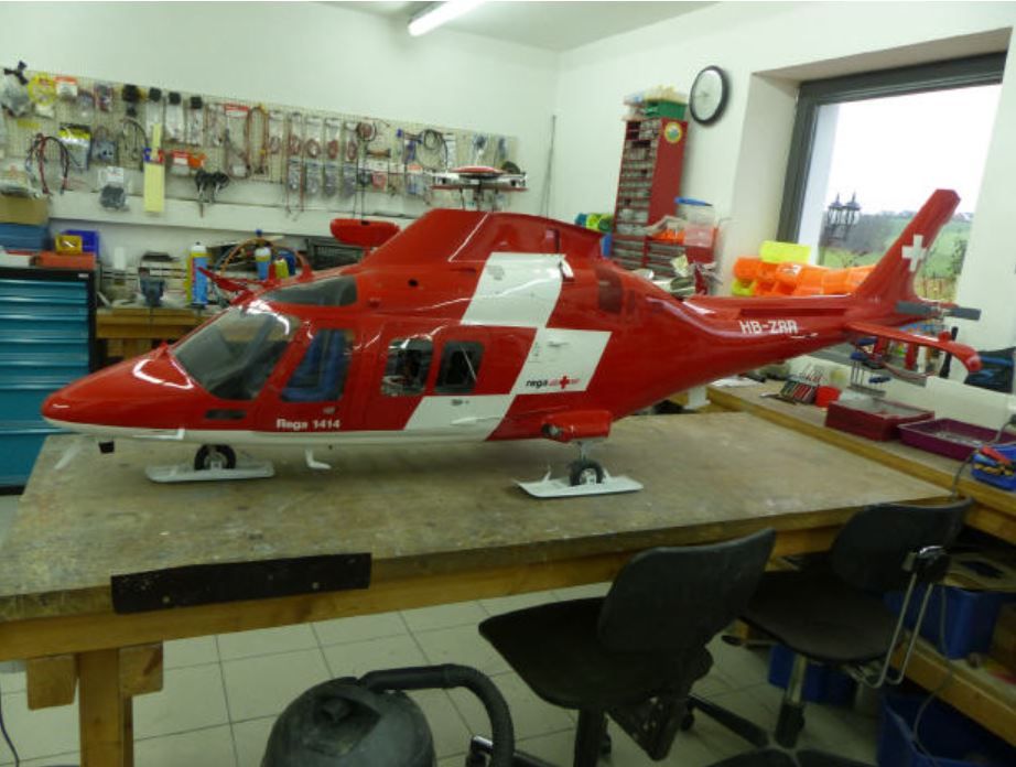 Die BELL AGUSTA A109 "Da Vinci" wird mit sehr viel Liebe zum Detail gebaut. Hier wurde das Modell mit einer Jakadofsky Wellenturbine PRO 6000 gebaut mit einer Leistung von 6,0 KW (8,2 PS). Viel Zubehör wie z.B. funktionierende Seilwinde, zusätzlichen Landescheinwerfern und natürlich auch der original getreue Cockpit Ausbau.