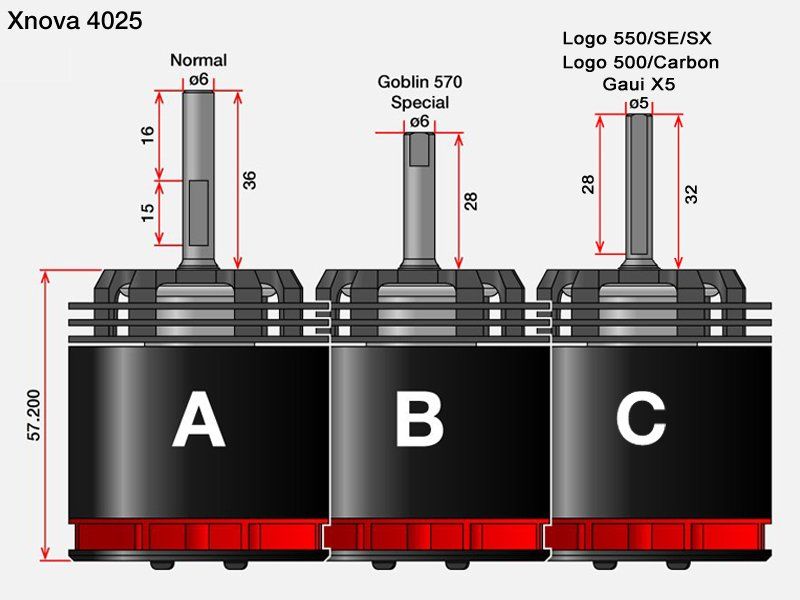 Xnova Lightning Brushless Motor 4025 mit 560KV mit 6mm A Welle (36mm) zum Beispiel für T-Rex 700, RAW 700 mit 6S - 12s SetUp. Die XNova 4025 Series sind für 550 - 700mm Blattlängen vorgesehen.