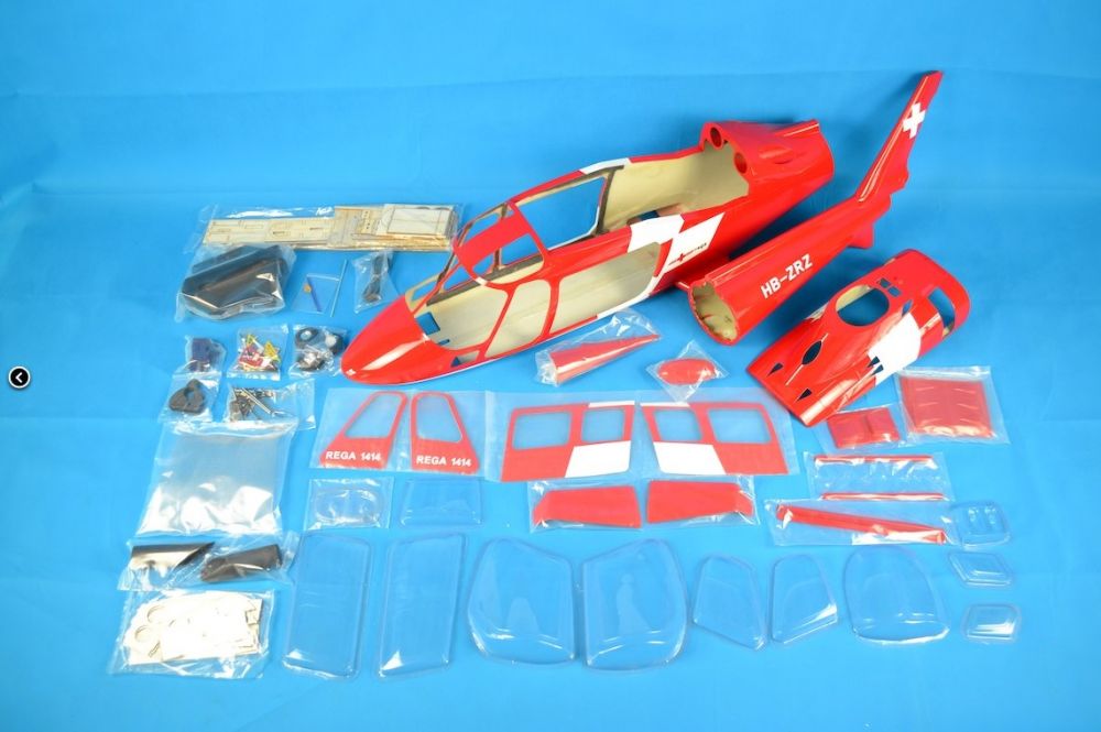 Alle Fenster, Fahrwerks- und andere Öffnungen sind bereits sauber ausgeschnitten und die Kanten sind mitlackiert. Somit beschränkt sich die Hauptarbeit auf das Anschrauben der Bodengruppe mit Einziehfahrwerk und das Montieren Ihrer (eingeflogenen) Mechanik in den Rumpf. Das Einkleben der passgenauen Verglasung und das Anbringen der mitgelieferten Scaleteile schließt dann auch schon die Arbeiten ab.